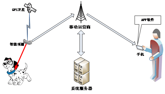 · 智能项圈通过天线接收GPS信号、wifi信号及移动运营商网络