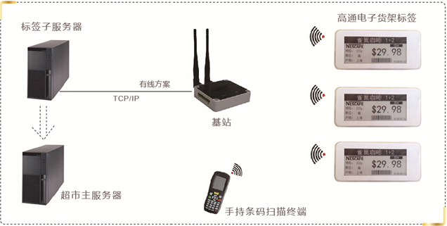 电子货架标签ESL是一个个带身份识别码的无线数据接收器,它们能够将接收到的RF信号还原成有效的数字信号并显示出来,ESL系统具有点对点和群发两种通讯功能,即:主计算机既可以对某个指定标签进行传送数据,也可以一次性地对所有标签进行控制。